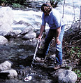 I decided to focus my attention on some exposed bedrock that was along a little stream only about 100 yards from our cabins. My very first pan full of gravel showed several nice small flakes that were just big enough to be picked up with my fingers. That first pan showed that indeed there was some very nice gold to be had here...